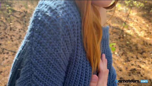 Ginger babe swallows cock in the woods